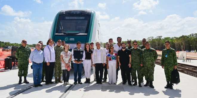 Acompañado de la gobernadora de Quintana Roo, María Elena Lezama Espinosa, representantes de las empresas ICA y Alstom México, además de servidores públicos del Gobierno de la Cuarta Transformación, el jefe del Ejecutivo indicó que el arribo de los trenes es un paso más hacia el cumplimiento del compromiso de entregar el Tren Maya en diciembre de este año al pueblo de México y en beneficio de la población del sureste.