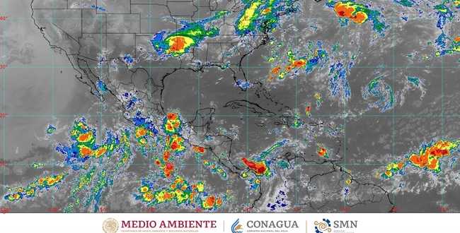 Dichas previsiones meteorológicas serán ocasionadas por la amplia circulación de la zona de baja presión con potencial para desarrollo ciclónico que se localizará al sur de Baja California Sur y que mantendrá su desplazamiento hacia el oeste-noroeste, alejándose gradualmente de las costas nacionales; por la onda tropical número 11 que recorrerá lentamente el sureste mexicano en interacción con una zona de baja presión con probabilidad para desarrollo ciclónico, localizada al sur de las costas de Oaxaca y Chiapas, y un canal de baja presión extendido sobre la Península de Yucatán, además de un segundo canal de baja presión extendido desde el noroeste hasta el centro de México, aunado con el ingreso de humedad de ambos litorales.