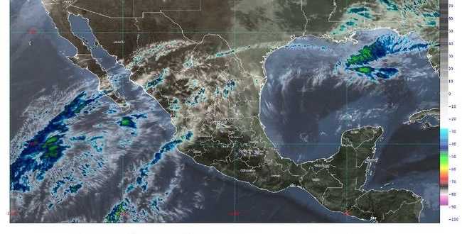 Las condiciones atmosféricas en los estados de la vertiente del Golfo de México serán de ambiente matutino templado, de caluroso a muy caluroso al atardecer, cielo de medio nublado a nublado durante el día, descargas eléctricas y posible caída de granizo en zonas de lluvia, así como viento del este y sureste de 10 a 25 km/h en la región con rachas de 40 a 60 km/h en Tabasco y con posibles tolvaneras en Tamaulipas.