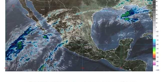 Hoy se pronostican lluvias puntuales muy fuertes (de 50 a 75 milímetros [mm]) para regiones de Colima, Durango, Jalisco, Michoacán, Nayarit y Sinaloa; fuertes (de 25 a 50 mm) en zonas de Chiapas, Chihuahua, Estado de México, Guanajuato, Guerrero, Oaxaca y Sonora; intervalos de chubascos (de 5 a 25 mm) en áreas de Ciudad de México, Hidalgo, Morelos, Puebla, Querétaro, Tlaxcala, Veracruz, Yucatán y Zacatecas, así como lluvias aisladas (de 0.1 a 5 mm) en Aguascalientes, Baja California Sur, Campeche, Coahuila, Nuevo León, Quintana Roo, San Luis Potosí, Tabasco y Tamaulipas.