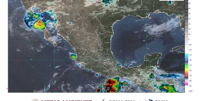 Hoy, domingo, se pronostican lluvias puntuales intensas (de 75 a 150 milímetros [mm]) en Oaxaca y Veracruz; muy fuertes (de 50 a 75 mm) en sitios de Chiapas, Puebla y Tabasco; fuertes (de 25 a 50 mm) en Chihuahua, Colima, Durango, Guerrero, Jalisco, Michoacán, Sinaloa y Sonora; intervalos de chubascos (de 5 a 25 mm) en regiones de Baja California, Baja California Sur, Campeche, Ciudad de México, Estado de México, Hidalgo, Morelos, Nayarit, Quintana Roo y Tlaxcala, así como lluvias aisladas (de 0.1 a 5 mm) en Guanajuato, Querétaro San, Luis Potosí, Tamaulipas y Yucatán. Con las lluvias podría haber descargas eléctricas y caída de granizo.