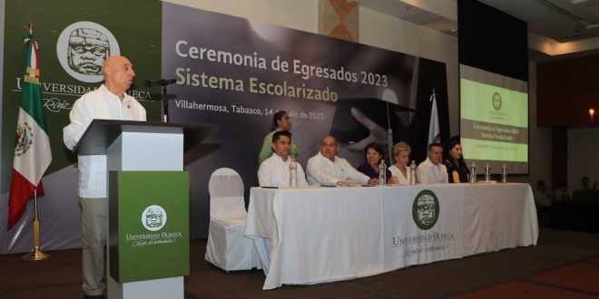La Universidad Olmeca llevó a cabo su ceremonia de egresados 2023 del sistema escolarizado, por lo que hizo entrega de constancias de egreso a 92 licenciados e ingenieros de 12 programas educativos.