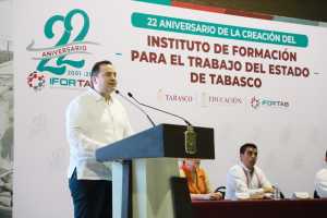 “Hoy celebramos 22 años de la creación del Ifortab, como un organismo descentralizado de la administración pública estatal, cuyo objeto consiste en impartir e impulsar la formación para el trabajo, es decir, la capacitación y certificación del activo más valioso de cualquier empresa, el capital humano”, sostuvo.