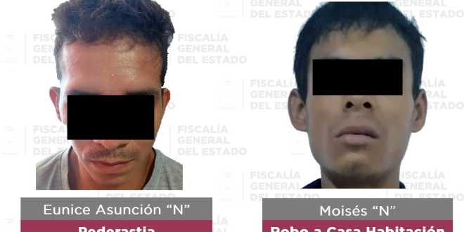 En operativos para el cumplimiento de órdenes de aprehensión, la Policía de Investigación logró la detención de cinco personas por su presunta responsabilidad penal en los delitos de pederastia, robo a casa habitación, lesiones, violencia e incumplimiento de asistencia familiar.
