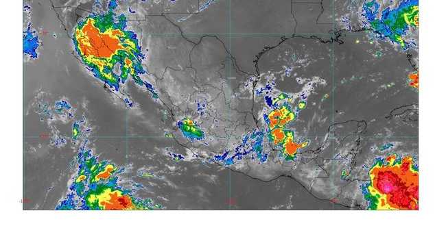 Para hoy viernes, se pronostican lluvias puntuales muy fuertes (de 50 a 75 milímetros [mm]) en Chiapas, Jalisco y Nayarit; fuertes (de 25 a 50 mm) para regiones de Colima, Durango, Estado de México, Michoacán, San Luis Potosí, Sinaloa, Sonora, Tabasco, Tamaulipas, Veracruz, Yucatán y Zacatecas; intervalos de chubascos (de 5 a 25 mm) en sitios de Aguascalientes, Campeche, Chihuahua, Ciudad de México, Guanajuato, Guerrero, Hidalgo Morelos, Nuevo León, Oaxaca, Puebla, Querétaro, Quintana Roo y Tlaxcala, así como lluvias aisladas (de 0.1 a 5 mm) en Baja California, Baja California Sur y Coahuila.
