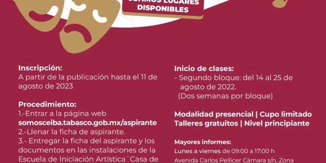 Para conocer las bases de estos cursos, entrar a la página web, somosceiba.gob.mx/aspirante, para llenar la ficha y posteriormente entregar los documentos en las instalaciones de la Casa de Artes.