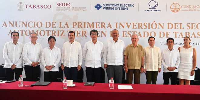 Sumitomo Electric Wiring Systems, empresa japonesa líder de esta industria destinará este capital para la instalación de su planta manufacturera en el municipio de Cunduacán.