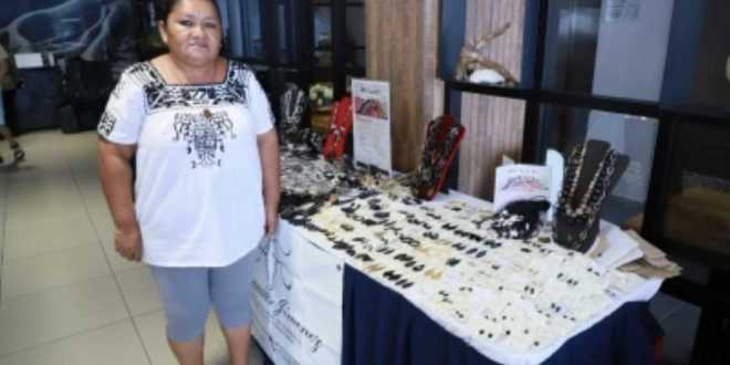 Maritza Soledad Chi Caamal, del estado de Campeche, agradeció la invitación para participar con sus artesanías, hechas con cuerno y hueso de Toro, una tradición familiar, que ha pasado de generación en generación, en la cual se elaboran dijes, aretes, pulseras y una variedad de artículos.
