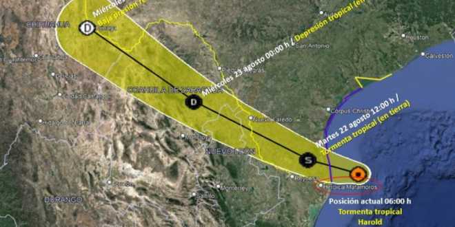 La tormenta tropical ‘Harold’ se formó en las costas de Tamaulipas, cerca de la frontera con Estados Unidos, y se dirige con dirección al sureste Texas.