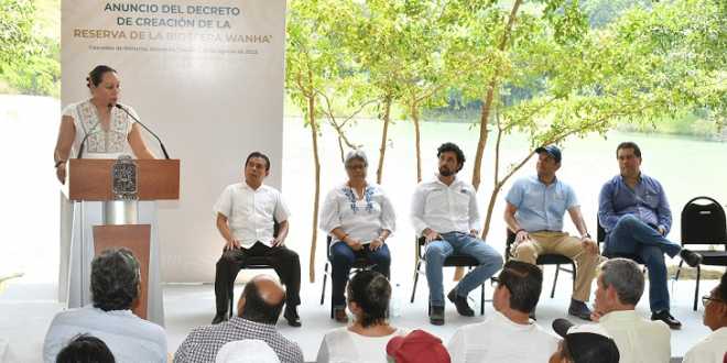 “Sigamos haciendo ese traje a la medida con las compañeras y compañeros que serán las guardianas y los guardianes de WANHA, y que el sueño es que cuando pase el Tren Maya, a través de sus paraderos y sus estaciones, se puedan ofertar los productos y los servicios para conocer esta belleza natural”, enfatizó María Luisa Albores González.