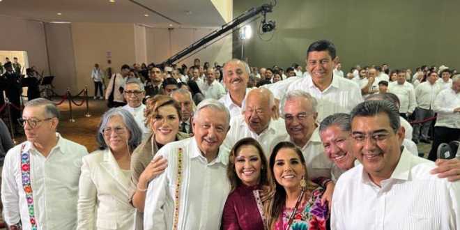 El mandatario estatal acudió el viernes a la ceremonia en la que el jefe del Ejecutivo federal pronunció su Quinto Informe de Gobierno, en un evento efectuado desde el estado de Campeche, mismo que fue la antesala del primer recorrido del Tren Maya, obra insigne de la Cuarta Transformación del país.