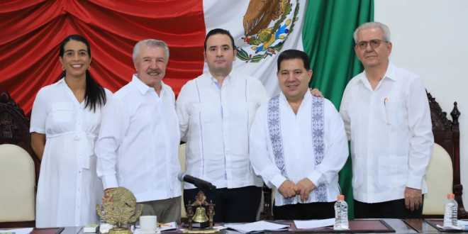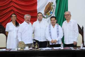 Congreso. Diputados Dariana Lemarroy, Jaime Lastra y Emilio Contreras con el secretario de Gobierno Guillermo del Rivero y el magistrado presidente del TSJ, Enrique Priego.