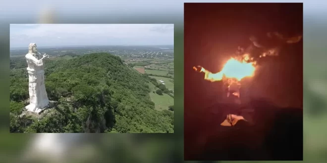 El Cristo Pescador de la Concordia, en Chiapas, se incendió debido a la caída de un rayo anoche. De acuerdo algunos pobladores, éste cayó directamente a los pies de la estatua.