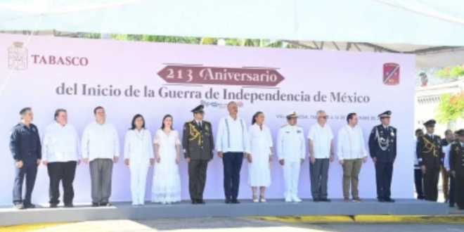En compañía de la presidenta municipal de Centro, Yolanda Osuna Huerta, mencionó que a más de 200 años todavía se escucha el eco del grito por que se clamaba la independencia y aunque independientes por muchos, en nuestra nación prevaleció un régimen que simulaba libertades y que obedecían a los intereses de unos cuantos.