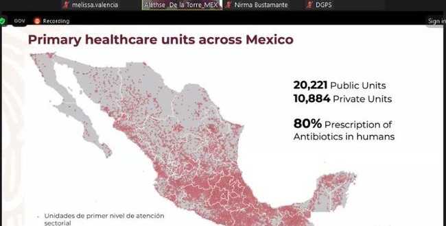 Ante personas expertas en epidemiología procedentes de México y Estados Unidos, entre quienes se encontraban investigadores de los Centros para el Control y la Prevención de Enfermedades (CDC, por sus siglas en inglés), De la Torre Rosas destacó que 80 por ciento de las recetas de antibióticos se emiten en unidades de primer nivel de atención, por lo que resulta necesario contar con un mecanismo eficaz de recolección de información que permita controlar la resistencia a los antimicrobianos.
