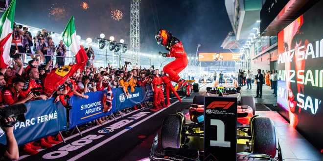 Carlos Sainz ganó el Gran Premio de Singapur de Fórmula 1 el domingo en el Circuito Callejero de Marina Bay tras prácticamente dominar la carrera de punta a punta y sabiendo gestionar la presión que le pusieron cuatro autos durante las últimas 10 vueltas de competencia. El español obtiene así su segunda victoria en la máxima categoría y la primera de este año convirtiéndose en el primer ganador distinto a Max Verstappen que venía con una racha de 10 triunfos consecutivos.