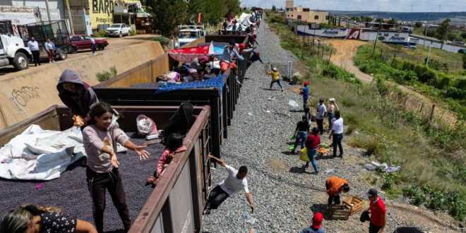 Ferromex advierte que sobre los carros de ferrocarril y en el patio de operaciones ferroviarias en Torreón, Coahuila, se encuentran más de mil 500 personas; en Irapuato, Guanajuato, más de 800, en San Francisco de los Romo, Aguascalientes, alrededor de mil y en la ruta entre Chihuahua y Ciudad Juárez hay más de mil personas que ocupan las góndolas de carga.