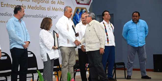 En ese marco fueron galardonados con la Medalla al Mérito Administrativo al técnico Manuel Rodríguez Barrientos; con la Medalla al Mérito de Enfermería a María Trinidad Sánchez de la Cruz; con la Medalla al Mérito Médico al doctor Jesús Ruiz Macosay; con la Medalla al Mérito Externo al doctor Juan Miguel Abdó Francis; con la Medalla a las Profesiones Afines de la Salud a la trabajadora social, Beatriz Elena Conde Ramírez.