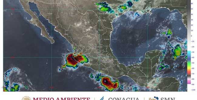 Hoy se pronostican lluvias puntuales muy fuertes (de 50 a 75 milímetros [mm]) en regiones de Campeche, Chiapas, Coahuila y Yucatán; fuertes (de 25 a 50 mm) en zonas de Chihuahua, Colima, Durango, Guerrero, Jalisco, Michoacán, Nayarit, Oaxaca y Quintana Roo; intervalos de chubascos (de 5 a 25 mm) en Sinaloa, Tabasco y Veracruz, así como lluvias aisladas (de 0.1 a 5 mm) en el Estado de México, Hidalgo, Nuevo León, Puebla, San Luis Potosí y Tamaulipas.