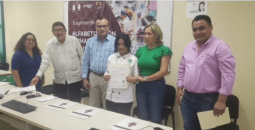Así lo consideró Valeria Álvarez Bautista, estudiante de la carrera Alimentos y Bebidas en el plantel 098 Villahermosa II del Colegio Nacional de Educación Profesional Técnica (CONALEP), quien recibió su carta de terminación de servicio social, por lo cual agradeció esta oportunidad que le permitió compartir sus conocimientos con quienes más lo necesitan y coadyuvar en el progreso de las personas jóvenes y adultas.