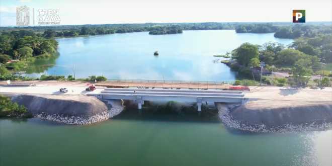 Agregó que de los cuatro viaductos en construcción, ya se terminó el de Candelaria, y se lleva un avance muy importante en los de Palenque, Tenosique y Escárcega, además de que ya se inició la edificación del Puente de Boca del Cerro que cruzará el río Usumacinta.