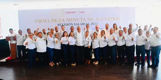 Al firmar la Minuta de Acuerdos con el secretario general del Sindicato Único de Trabajadores al Servicio del Estado (SUTSET), René Ovando Olán, el mandatario tabasqueño destacó que este esfuerzo extraordinario logrado por su administración con diálogo y unidad con la organización sindical, será retroactivo al 1 de enero de 2023 y se pagará la segunda quincena del próximo mes de octubre.