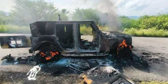 De acuerdo con reportes preliminares, la unidad blindada artesanalmente habría pasado por encima de un artefacto explosivo, lo que provocó que quedara envuelta en llamas.