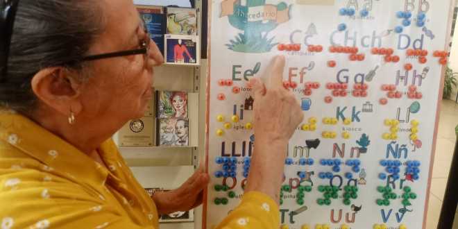 Luz del Carmen Solís tiene 17 años al frente de esta área en la biblioteca y más de 30 años apoyando a personas con discapacidad visual; entrevistada por Novedades de Tabasco, mostró los materiales que utiliza para atender a la población y enseñar el sistema braille.