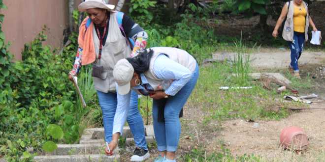 Personal de la Secretaría de Salud realiza trabajos de abatización ante los altos contagios de dengue en la entidad, el producto químico que se utiliza es colocado en lugares u objetos que tengan almacenamiento de agua.
