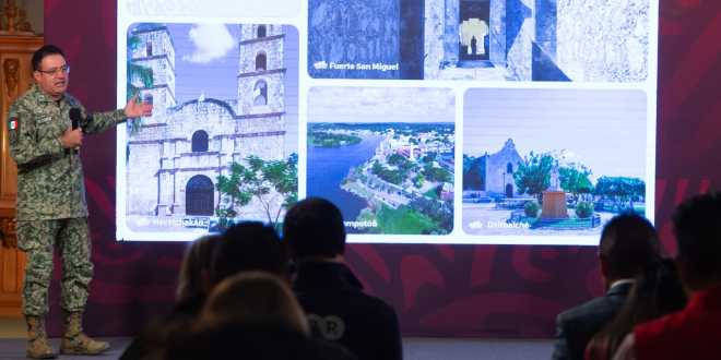 Mencionó además la intervención del Instituto Nacional de Antropología e Historia (INAH) en los sitios arqueológicos de Edzná y Xcalumkín, y refirió que la Secretaría de la Defensa Nacional (Sedena) construye el Hotel Tren Maya en Edzná.