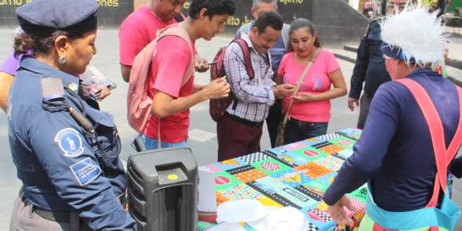 En el Parque Juárez, ubicado en la capital tabasqueña, personal del Departamento de Educación Especial y Recreativa de la PEC, realizó actividades lúdicas que incluyó dominó vial y ruleta, entregando premios a los ganadores.