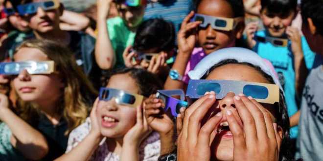 Si usas anteojos, manténlos puestos y coloca las gafas para eclipses sobre ellos o sostén tu visor manual frente a ellos.