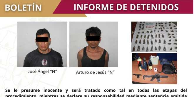 En el marco del “Operativo Macuspana Seguro”, en el que participa la Secretaría de la Defensa Nacional, Guardia Nacional, Secretaría de Seguridad y Protección Ciudadana, y la Policía Municipal, a fin de reforzar la vigilancia y garantizar la tranquilidad de las familias, se logró la detención de dos presuntos delincuentes, así como el aseguramiento de armas de fuego, mantas, bombas molotov y estupefacientes.