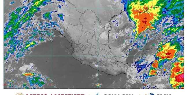 Para este martes se pronostican lluvias puntuales intensas (de 75 a 150 milímetros [mm]) en regiones de Chiapas, Oaxaca, Tabasco y el sur de Veracruz; muy fuertes (de 50 a 75 mm) en zonas de Campeche, Quintana Roo y Yucatán; fuertes (de 25 a 50 mm) en áreas de Puebla; intervalos de chubascos (de 5 a 25 mm) en el Estado de México, Guerrero, Hidalgo y Michoacán, así como lluvias aisladas (de 0.1 a 5 mm) en Aguascalientes, Ciudad de México, Coahuila, Colima, Guanajuato, Jalisco, Morelos, Nayarit, Nuevo León, Querétaro, San Luis Potosí, Tamaulipas, Tlaxcala y Zacatecas.