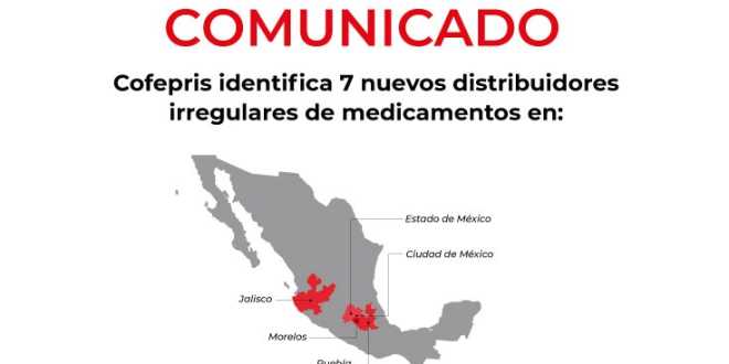 Cofepris identifica 7 nuevos distribuidores irregulares de medicamentos