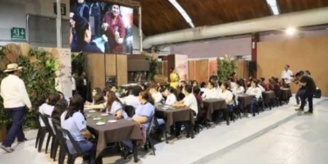 En la actividad realizada en el salón Chocolate, junto a la doctora Judith Peralta, especialista en Lenguaje de Señas Mexicanas (LSM), resaltó que en las familias productoras de cacao, en las comunidades, hay personas con capacidades diferentes como sordas o ciegas.