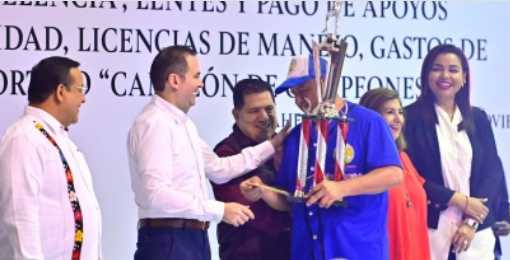 Guillermo del Rivero celebró por ello la entrega de laptops del programa “Alumnos de 10, Camino a la Excelencia”, además de lentes y pagos de apoyos económicos para prótesis, canastillas de maternidad, licencias de manejo, gastos de titulación, así como premios a ganadores del Torneo Deportivo “Campeón de Campeones”.