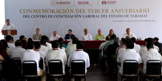 “Los felicito ampliamente no sólo por el tercer aniversario sino por el buen trabajo que se viene desempeñando y cada día va rindiendo frutos y sumando más cosas buenas que benefician al sector laboral en Tabasco, tanto a los trabajadores como a las mismas empresas, resultados que demuestran su eficiencia y calidad en el servicio que ofrecen a la ciudadanía”, aseveró.