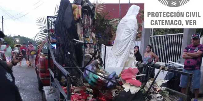 Pirotecnia que era trasladada en un vehículo para la celebración de un evento de la Santa Muerte explotó en Catemaco, Veracruz. Dos personas resultaron con quemaduras, una de ellas perdió una pierna.