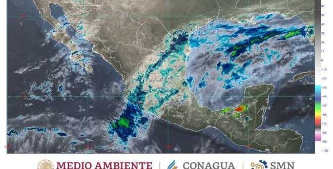 Se prevén lluvias puntuales torrenciales en regiones de Chiapas, Tabasco y el sur de Veracruz; intensas en sitios de Oaxaca; muy fuertes en zonas de Campeche y Yucatán; fuertes en áreas de Puebla y Quintana Roo; intervalos de chubascos en Estado de México, Guanajuato, Hidalgo, Nuevo León, Querétaro, San Luis Potosí, Tamaulipas y Zacatecas, así como lluvias aisladas en Aguascalientes, Ciudad de México, Coahuila, Colima, Durango, Guerrero, Jalisco, Michoacán, Morelos, Nayarit y Tlaxcala.