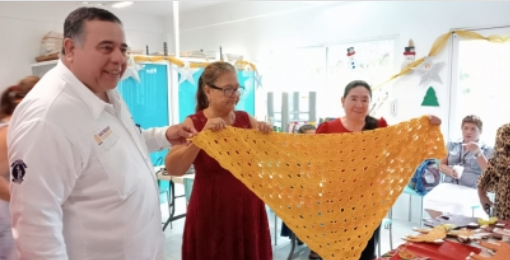 Acompañado de Nidia Hernández Tosca, trabajadora social del DIF Centro, felicitó a las abuelitas por estas actividades manuales que les ayudan a su salud física y psicológica, y demostrando además que la edad no importa para hacer cosas.