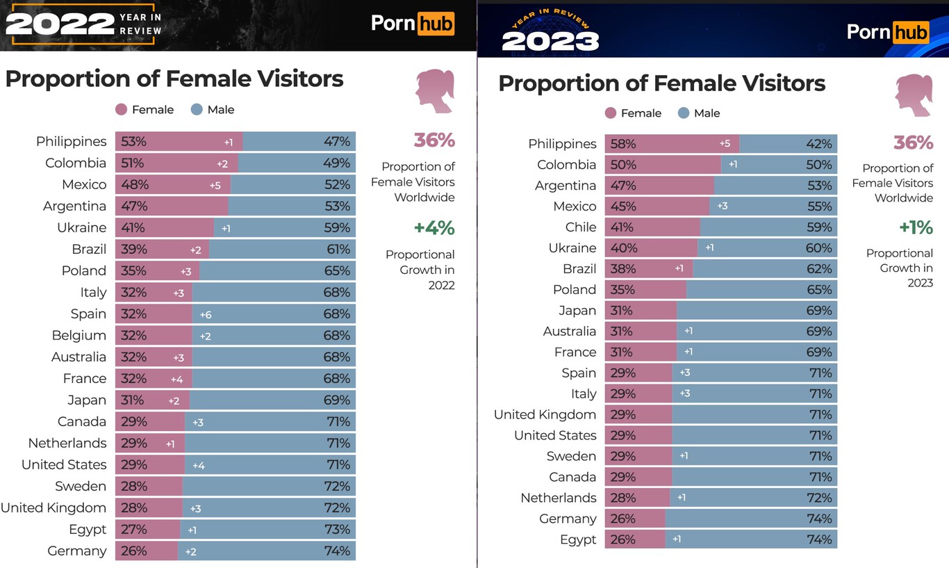 Con el final del año llegan también los tradicionales recuentos de Spotify, Google y sí, Pornhub. Año con año, México ha avanzado en su nivel de consumo y, apenas en 2022, entró al top 5 de países que más acceden a la plataforma. En 2023, México es ya el cuarto país que más consume contenido en el sitio para adultos.