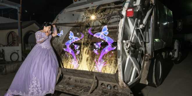Se viraliza joven por hacer su sesión de XV años con un camión de basura