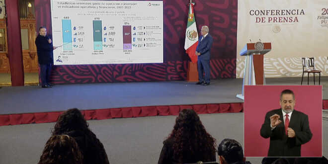 Presentando gráficos durante la conferencia del presidente Andrés Manuel López Obrador, el director de Pemex detalló la evolución de la deuda, indicando que en 2007 era de 67 mil millones de dólares, aumentando a casi 139 mil millones al inicio de la administración actual, pero luego disminuyendo a 106 mil millones, representando una reducción del 17.4%, equivalente a 22,500 millones de dólares.