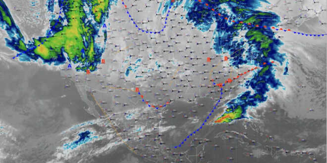 Hoy domingo, la cuarta tormenta invernal ocasionará vientos intensos con rachas de 100 a 120 kilómetros por hora (km/h) y tolvaneras en Baja California, Chihuahua, Durango y Sonora; oleaje de 3 a 5 metros (m) de altura en la costa oeste de la Península de Baja California; lluvias puntuales fuertes (de 25 a 50 milímetros [mm]) en Chihuahua y Sonora, y chubascos (de 5 a 25 mm) en Baja California; ambiente gélido con temperaturas mínimas de -15 a -10 grados Celsius y heladas y en las sierras de Sonora, Chihuahua y Durango, así como temperaturas mínimas de -10 a -5 grados Celsius, heladas y caída de nieve o aguanieve en zonas serranas de Baja California, Chihuahua y Sonora.