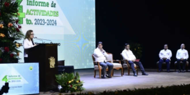 Ante la comunidad universitaria, directivos, investigadores, estudiantes e invitados especiales, la funcionaria estatal destacó que con el informe del rector, queda demostrado que la transparencia y la rendición de cuentas permiten fortalecer las capacidades institucionales y educativas de esta Universidad.