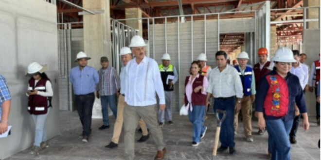 Acompañados por los secretarios de Obras Públicas, Gildardo Lanestosa León y de Salud, Sílvia Guillermina Roldán Fernández, el mandatario estatal recorrió los tres niveles del próximo complejo hospitalario e instruyó ampliar los frentes de trabajo para cumplir en tiempo y forma con la entrega del proyecto.