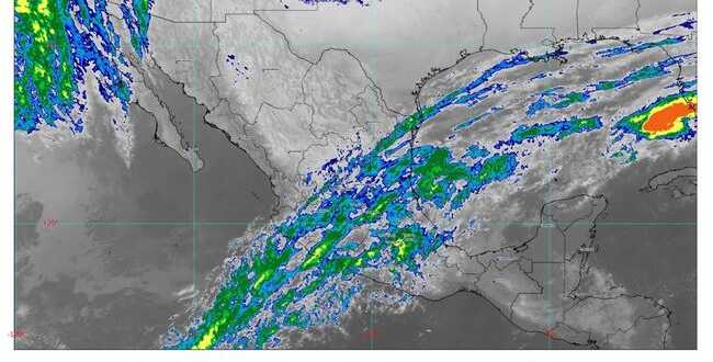 Hoy se pronostican lluvias puntuales intensas (de 75 a 150 milímetros [mm]) en regiones de Chiapas, Tabasco y Veracruz; muy fuertes (de 50 a 75 mm) en zonas de Oaxaca y Puebla; fuertes (de 25 a 50 mm) en áreas de Campeche, Quintana Roo, San Luis Potosí, Tamaulipas y Yucatán; intervalos de chubascos (de 5 a 25 mm) en Hidalgo y Querétaro, así como lluvias aisladas (de 0.1 a 5 mm) en Baja California, Baja California Sur, Colima, Ciudad de México, Estado de México, Guanajuato, Guerrero, Jalisco, Michoacán y Tlaxcala.