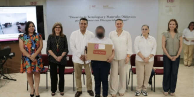 Al encabezar la ceremonia de donación de tecnologías y materiales didácticos para personas con discapacidad visual, la presidenta del Sistema DIF Tabasco, Guadalupe Castro de Merino, aseguró que seguirán estableciendo alianzas con distintos sectores de la sociedad para continuar haciendo su labor a favor de quienes más lo necesitan.