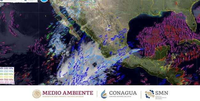 Por otra parte, se pronostican lluvias puntuales fuertes (de 25 a 50 milímetros [mm]) en regiones de Chiapas; intervalos de chubascos (de 5 a 25 mm) en Baja California Sur, Oaxaca, Sinaloa, Sonora, Tabasco y Veracruz, así como lluvias aisladas (de 0.1 a 5 mm) en Campeche, Chihuahua, Estado de México, Guerrero, Hidalgo, Michoacán, Puebla, Quintana Roo y Yucatán.
